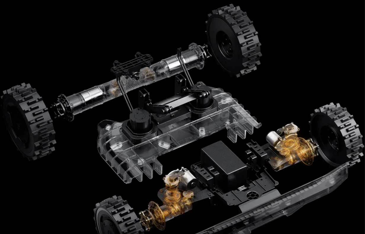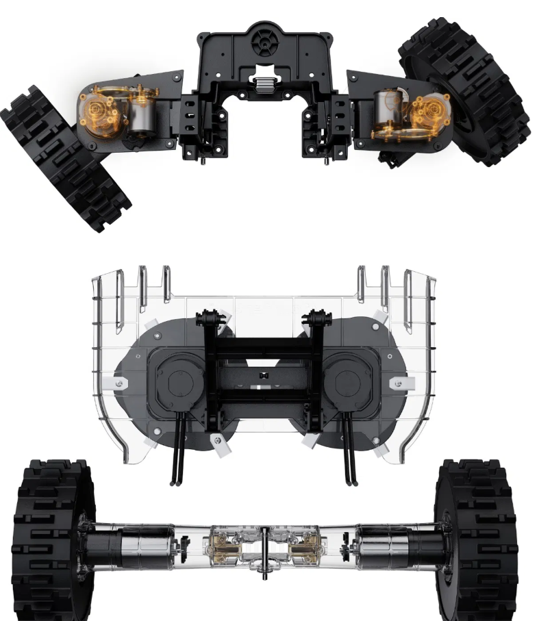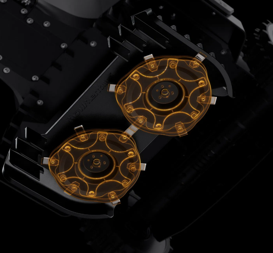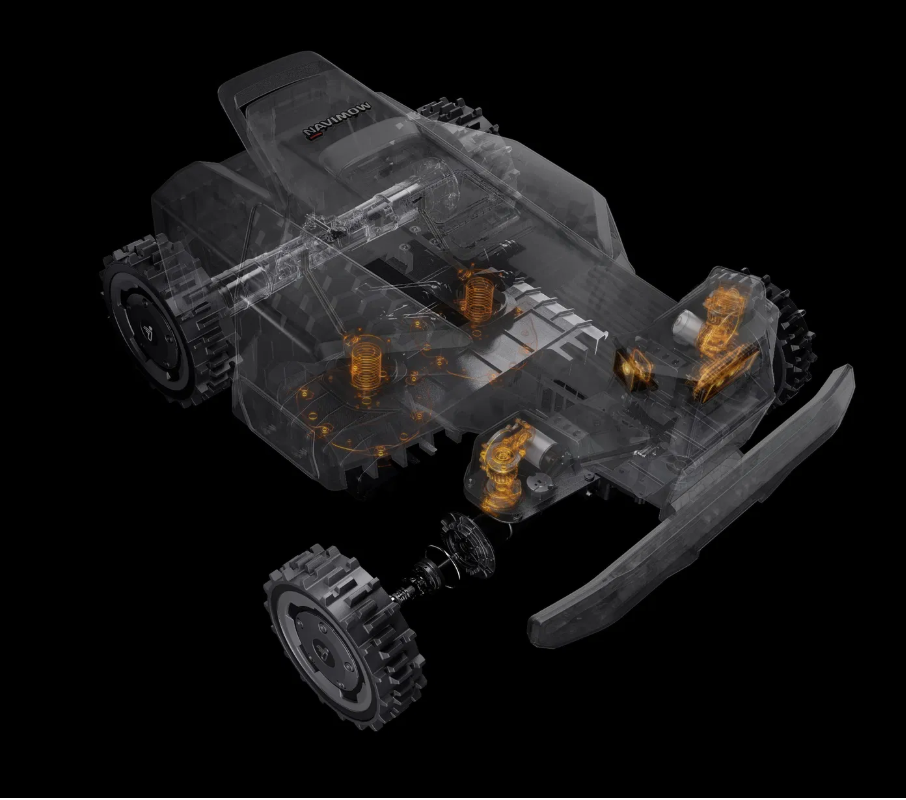 Model X-420E AWD je vybaven systémem dvojitého odpružení, který byl speciálně vyladěn pro pohyb v náročném terénu (ORV). Bez námahy tak zvládá jakýkoliv složitý povrch – od kamenných cest a vysokých obrubníků až po terénní výmoly. Tato robustní konstrukce zajišťuje stabilní stoupání a bezproblémové překračování překážek, čímž zaručuje plynulý průběh práce i tam, kde by standardní robotické sekačky uvízly.