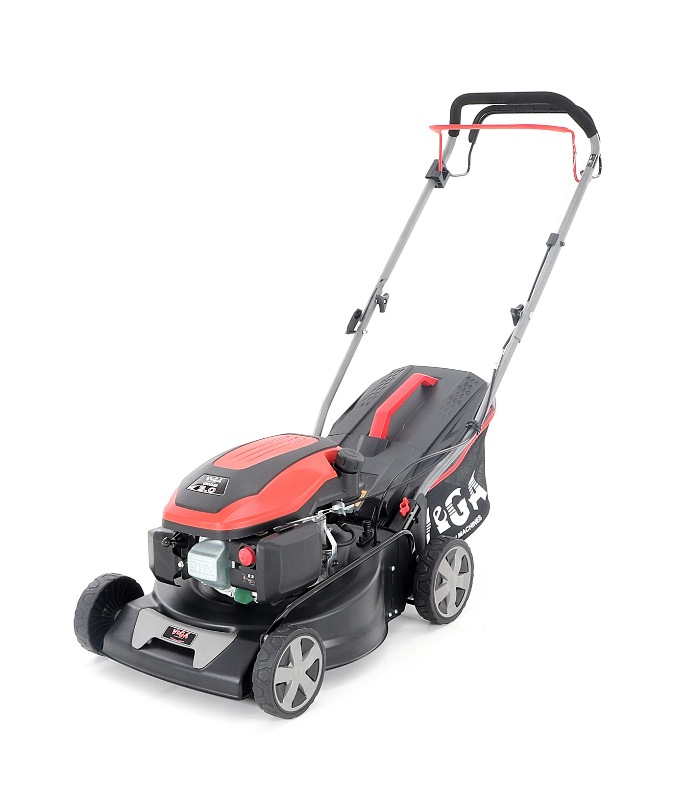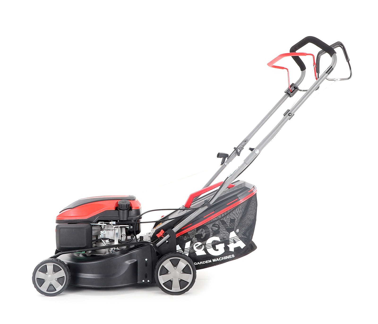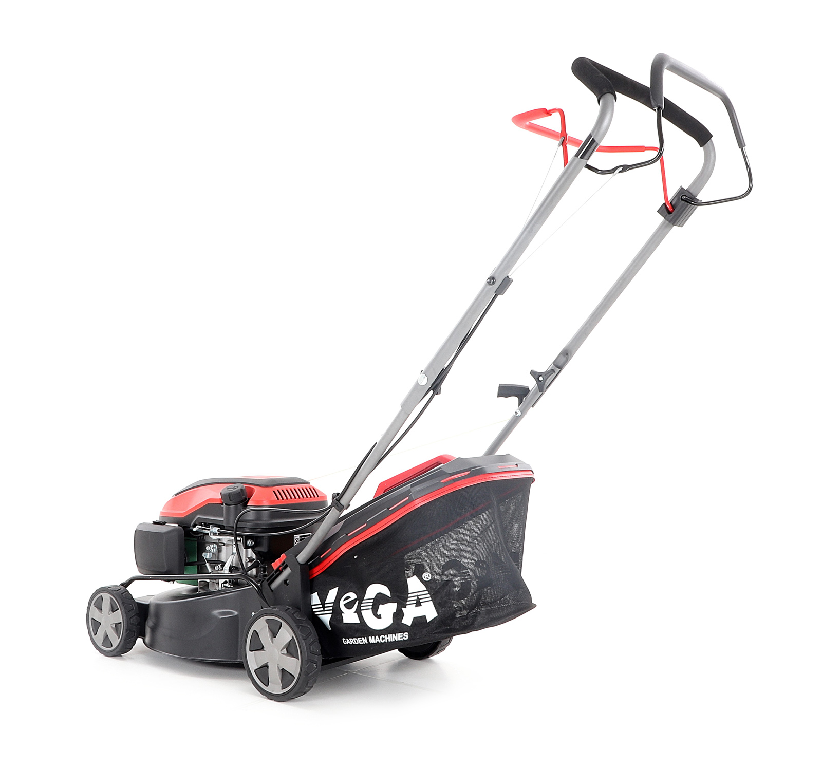 Centrální nastavení výšky sečení je u značky VeGA také samozřejmostí, jako ergonomické měkčené madlo.